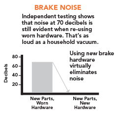 It takes only a few extra minutes during a pad and rotor replacement, to install new brake hardware – an inexpensive way to ensure the job is complete.